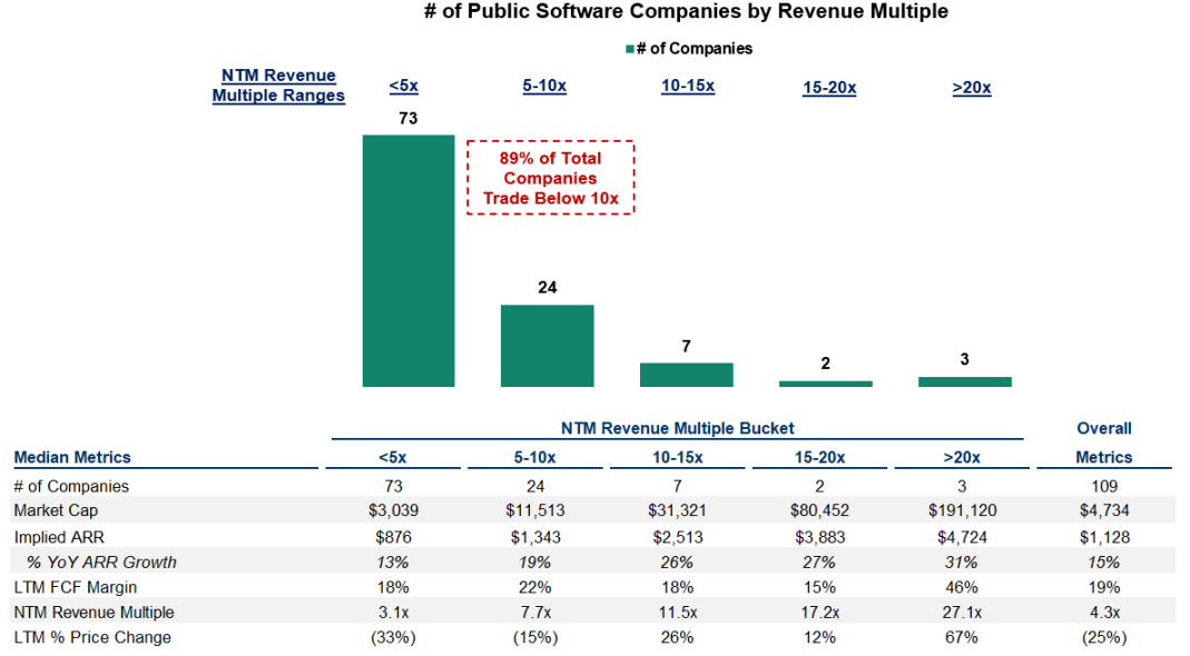 Görüş: Halka açık yazılım şirketlerinin mevcut değerleme çarpanları içler acısı. 100'den fazla şirketin %89'u, gelecek 12 aylık gelirlerinin 10 katından daha düşük bir değerlemeyle işlem görüyor; sadece 3 şirket 20 katı aşıyor. Çoğu şirket durgun gelir artışı yaşıyor ve ortalama yıllık yinelenen gelir (ARR) büyümesi sadece %15 seviyesinde olup, Anthropic gibi yapay zeka girişimlerinin çok gerisinde kalıyor. Yapay zeka bazı bütçelerin yerini alabilirken, asıl sorun bu değil. Gerçek sorun, çoğu SaaS sağlayıcısının müşterilerin ödemeye razı olacağı yapay zeka ürünleri geliştirmemiş olmasıdır. Yenilik yapamazlarsa ve yapay zekanın etkisini gösteremezlerse, bu geleneksel şirketler düşük büyüme, düşük değerlemeler ve kademeli düşüş yaşamaya devam edeceklerdir. Şimdi, yapay zeka dönüşümleri için kritik bir dönem.