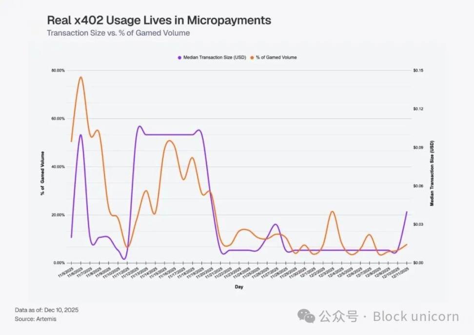 Aynı zamanda -ve belki de daha önemlisi- işlem hacmindeki kademeli düşüş, x402'nin uzun vadeli yönünü önceden haber veriyor. Esasen, bu bir mikro ödeme kanalı. Gerçek değeri, kullandıkça öde API'lerini destekleme, içerik oluşturma ve proxy koordinasyonu gibi küçük işlemlerde yatıyor. Bu meşru kullanım durumları arttıkça ve hile yapma baskısı azaldıkça, ortalama işlem değerinin ve oyun işlem hacmindeki payının düşmeye devam etmesini bekliyorum.