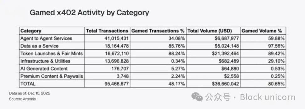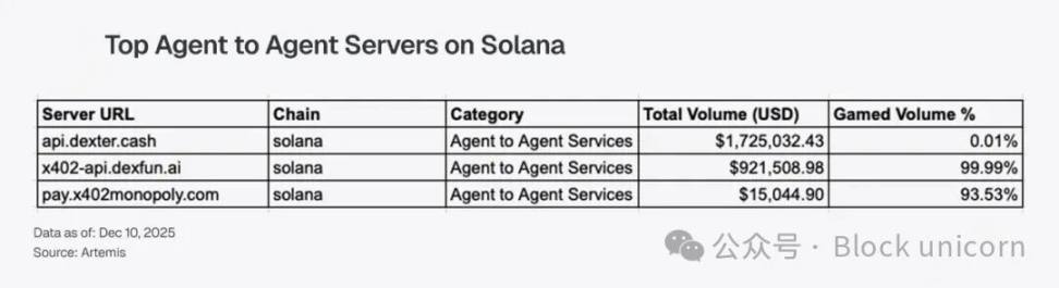 İkinci olarak, yüksek oranda doğal olmayan aktivite iki farklı senaryoyu gösterebilir. Örneğin, dexfun.ai açıkça sıralamaları manipüle ediyordu; x402scan'in sıralamasını yükseltmek ve görünürlük kazanmak için sahte işlemler kullanıyordu. Ancak, x402monopoly gibi durumlarda, yüksek oran ekibin altyapısını test ettiğini yansıtır.