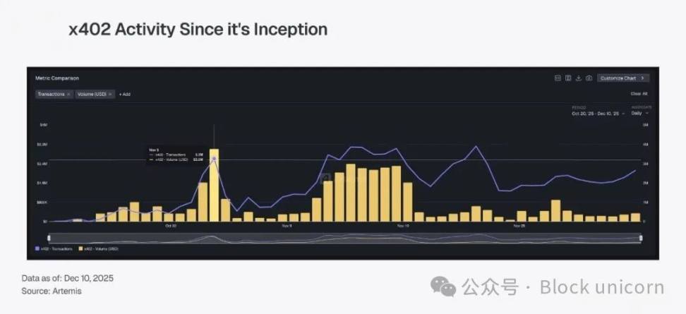 Ekim ayı sonlarında x402 kampanyasının hız kazanmasından bu yana, 92 milyon işlemle birlikte 335 milyon doların üzerinde işlem hacmi gördük.