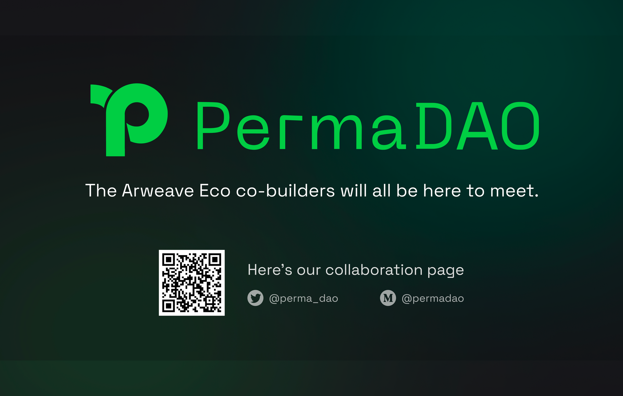 Web3 の開発は加速しており、Arweave はより多くの開発者にインフラストラクチャとして採用され、新しくてよりカラフルなエコシステムが形成されるでしょう。 PermaDAO は、この目的のために設立された共同ビルダーのコミュニティです。すべての参加者は、Arweave のエコロジーに貢献するための自分の役割をここで見つけることができます。Arweave に関する提案やタスクはすべてここで公開され、コミュニティ全体からサポートとフィードバックを受けることができます。 PermaDAOに参加してWeb3 を構築しましょう!